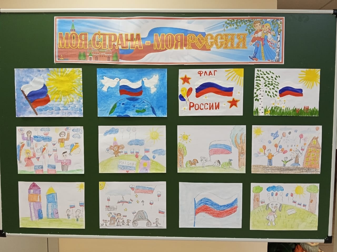 В рамках празднования Дня Государственного флага Российской Федерации оформлена выставка детских рисунков "Моя страна - моя Россия"