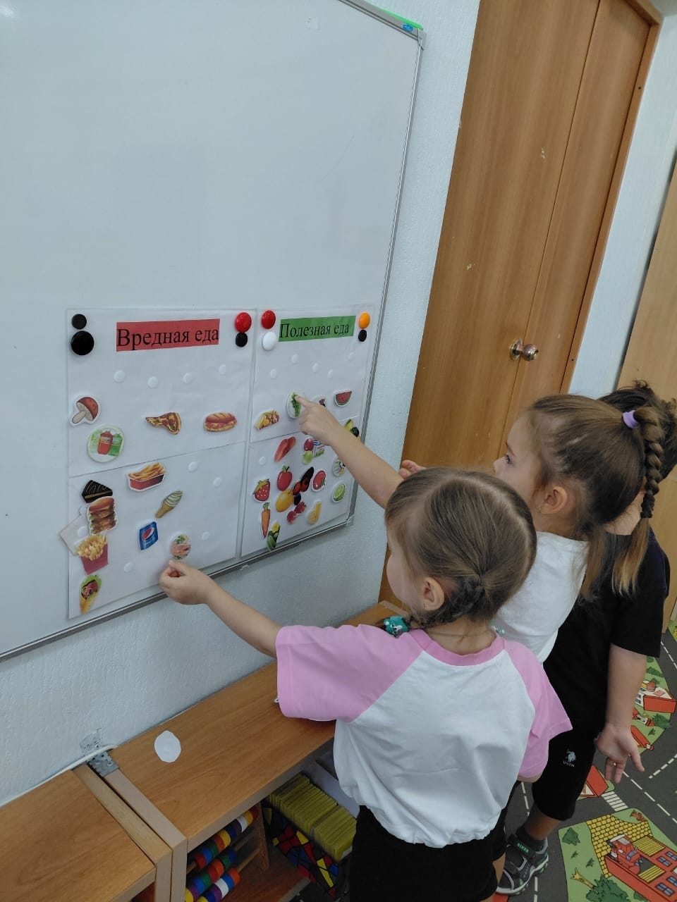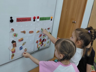 В группе N5 "Брусничка" прошла беседа - игра: "Я здоровье берегу!" Цель которой воспитывать интерес к здоровому образу жизни, потребность ежедневной двигательной деятельности, соблюдении режима питания. Ребята выполнили разминку закрепили знания о предметах личной гигиены: расчёска,мыло,зубная щётка, мочалка, полотенце поиграли в дидактическую игру ,,Полезно и вредно,, с помощью карточек, дети разместили по двум группам: полезные продукты (овощи, фрукты) и вредные (чипсы, конфеты, и.т.д)